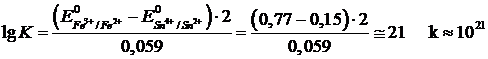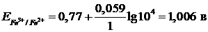 Если, например, [Fe3+] = 1 моль/л, а [Fe2+] = 0,0001 моль/л, то