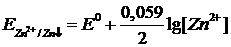 В случае пар, подобных Zn2+/Zn, где восстановленная форма представляет собой металл, концентрация. ее является величиной постоянной и в выражение для Е не входит. Тогда