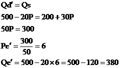 Qd = 300 – 20P, Qs = 20 + 50P.