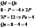 3. Даны функции спроса и предложения: Qd = 8-P; Qs = - 4+2P