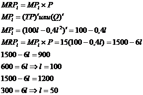 Ставка заработной платы W=1000 ден. ед. Сколько работников наймет фирма: а)в исходной ситуации; б)при W=1300 ден. ед.
