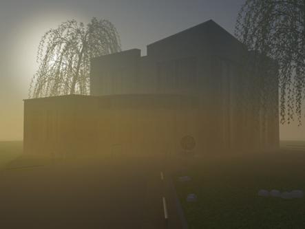 Еще одним специальным световым эффектом является волюметрический эффект. Этот эффект придает итоговой визуализации дополнительный реализм. Волюметрический эффект возникает тогда, когда световые лучи проходят через некую среду, например, воздух, содержащую какие-то примеси (туман, пыль, дым и т. п.). На Рисунке 11 показана сцена, где свет от источника пробивается сквозь дымку.