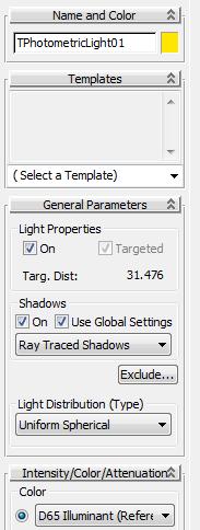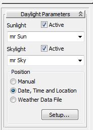 При подготовке архитектурных визуализаций рекомендуется использовать источники освещения фотометрического типа (Photometric Lights) при моделировании искусственного освещения, а также специальные источники mrSun и mrSky для моделирования прямого солнечного и рассеянного дневного света (Рисунок 15а и Рисунок 15б).