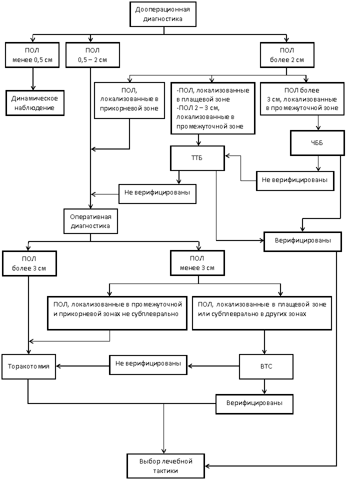 Рис. 5. Алгоритм хирургического лечения периферических образований легких.