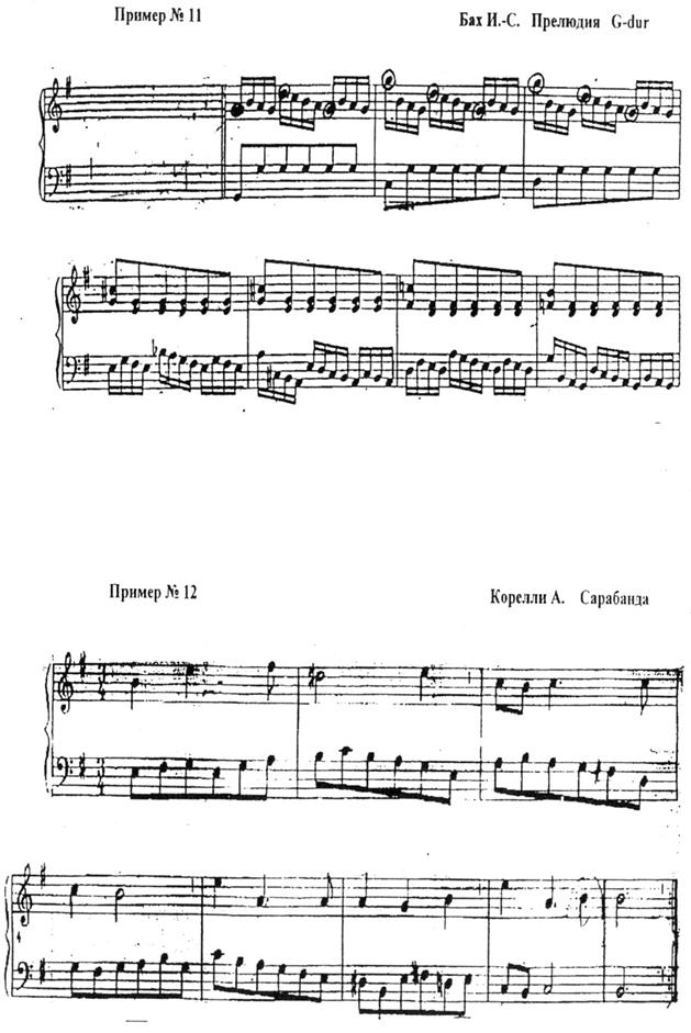 Безусловно, такие представления и их реализация в интонировании противоречат во многих случаях стилистике исполняемых произведений. К примеру, в клавирных текстах барокко и классицизма, независимо от жанра, орнамент в целом выполняет функцию украшения-узора, то есть “прибавочного” (Д. Лихачев), а не ведущего элемента текста, расцвечивающего конструкцию темы. Понимание функции орнамента как “прибавочного элемента” существенно корректирует действия исполнителя в его намерении сделать “мелодию” главным элементом текста (рельефом), а “основу” инструментальной конструкции – дополнительным (фоном).