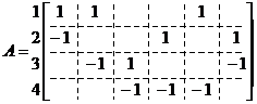 aij = +1, если ветвь j принадлежит узлу i и стрелка направлена от узла i;