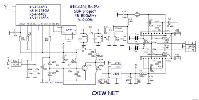 Могут возникнуть сложности с гетеродином на ПАВ. Если он не захочет заводится нужно поиграть емкостями 8 пф вплоть до выкидывания той, что идет от эмитера на массу.
