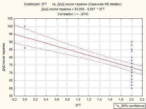 Рис. 5. Корреляционный анализ уровня ДАД и применением ГТ.