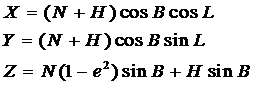 Здесь величины dX0,, dY0, dZ0 представляют собой поправки в координаты центра референц-эллипсоида, наиболее подходящего для данной территории.