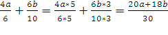 Как именно? (Сначала надо привести алгебраические дроби к наименьшему общему знаменателю 30, а затем сложить их.)