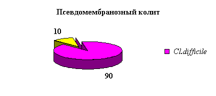 Многочисленные наблюдения свидетельствуют, что в течение последних 20 лет наиболее значимым патогеном, ответственным за развитие нозокомиальных диарей является спорообразующий анаэроб Clostridium difficile . Данный микроорганизм способен вызывать различные варианты течения ААПК, однако наибольшее внимание исследователей он привлекает, прежде всего, как этиологический фактор ПМК, за развитие которого он ответственен более чем в 90% случаев (рисунок 2).
