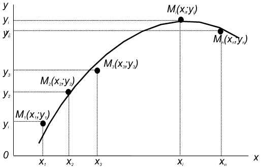 По полученной кривой устанавливается вид приближающей функции (обычно из числа простых по виду аналитических функций: линейная, степенная, экспоненциальная или показательная, логарифмическая, гипербола, дробно-рациональная и т. д.).