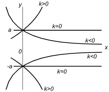 кривая касается оси ординат. При