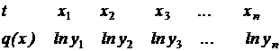 Покажем, как нахождение приближающей функции в виде геометрической регрессии может быть сведено к нахождению параметров линейной функции. Предполагая, что в исходной таблице 10.1 значения аргумента и функции положительны, прологарифмируем равенство (10.5) при условии ![]()