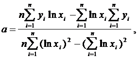 Практически для нахождения приближающей функции в виде степенной (при сделанных выше предположениях) необходимо проделать следующие операции: