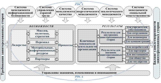 Рис. 3. Модель системы менеджмента, направленной на обеспечение устойчивого развития организации, баланса и удовлетворения требований заинтересованных сторон