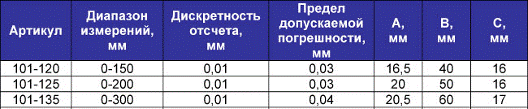 Предел допускаемой погрешности штангенциркулей приведен в табл. 1.