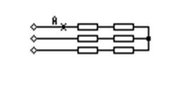 в) При обрыве фазы в точке В (см. рис. 5) мы получаем, что один нагревателя не включен вообще, а остальные находятся под номинальным напряжением. Следовательно, число нагревателей в работе будет два.
