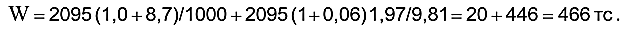 Первое слагаемое этого уравнения представляет сумму основного и дополнительного сопротивлений (от уклона), а второе – сопротивление инерционной силы хвостовой части. Приняв для данного примера массу хвостовой части поезда Qхв = 2095 т, основное удельное сопротивление вагонов "щ = 1,0 кгс/т, удельное сопротивление от подъема i = 8,7 ‰, коэффициент инерции вращающихся масс = 0,06, ускорение хвостовой части поезда а = 1,97 м/с 2 , ускорение свободного падения g = 9,81 м/с2, получим в численном выражении вероятную максимальную величину полного сопротивления вагонов хвостовой части: