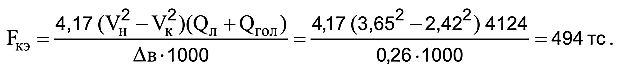 Со стороны головной части действовала противоположно направленная сила, которая складывается из силы тяги локомотива и механической силы, реализуемой за счет кинетической энергии как вагонов, так и локомотива. Максимально возможную величину последней по запасу кинетической энергии можно определить, использовав известную из ПТЭ зависимость: