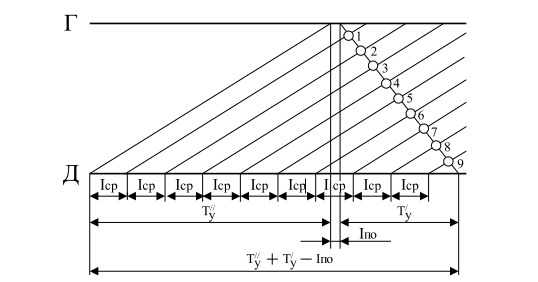 Рис 1.2. Схема обгонов грузовых поездов пассажирским на участке