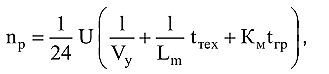 где l – рейс вагона, км; Vy– участковая скорость, км/ч; Lm– вагонное плечо, км; tm– средний простой транзитного вагона на технической станции, ч; Km– коэффициент местной работы; tгр – средний простой местного вагона (на станциях погрузки и выгрузки), приходящийся на одну грузовую операцию, ч.
