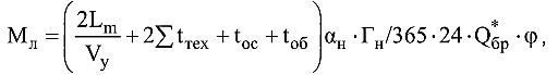 Первое слагаемое формулы представляет собой время нахождения вагона в движении за время оборота с учетом стоянок на промежуточных станциях. Оно зависит от уровня участковой и, следовательно, ходовой скорости и составляет для сети железных дорог примерно одну треть от общего времени оборота вагона. Поскольку ходовая скорость тесно связана с массой поезда, то эта часть времени оборота также зависит от массы поездов.
