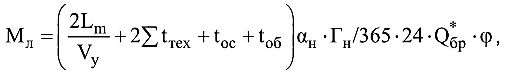 – сумма времени простоев поезда в одном направлении на попутных технических станциях, расположенных между станциями оборота бригады; 30,4 – среднее число дней в месяце; ![]()