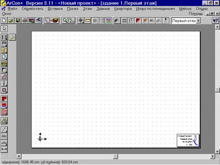 - создание нового проекта: выбрать из меню ФАЙЛ-НОВЫЙ (или кнопку), после этого задаем характеристики этажей в раскрывшемся окне.