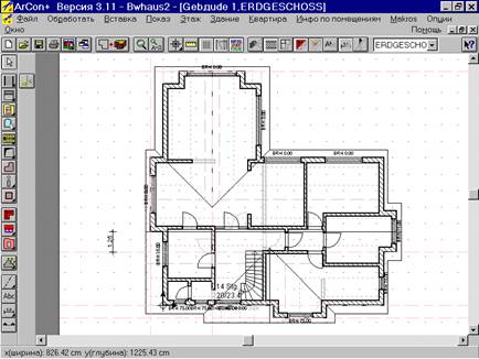 На рис.2 приведено 2D-окно программы для работы с планами.