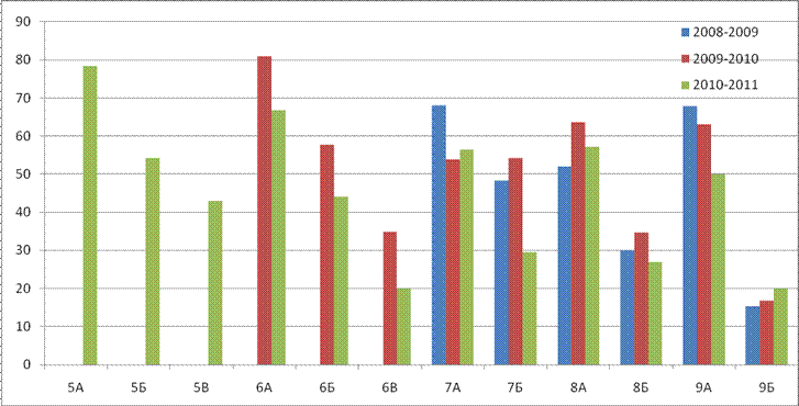 Следует обратить серьезное внимание на качество обучения в следующих классах: 9 «Б», 8 «Б», 7 «Б».
