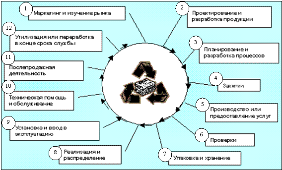 Для выделения основных процессов может быть применена схема жизненного цикла продукции (рисунок 2, [3]).