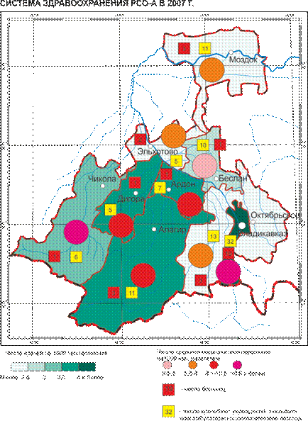 Северная Осетия является одним из наиболее экономически развитых регионов Северо-Кавказского ФО. Развитие промышленности и сельского хозяйства «потянули» за собой социальную инфраструктуру. Многие градообразующие предприятия в городах, колхозы и совхозы в сельской местности строили и содержали объекты СИ. Переход к рыночной экономике нарушил сравнительно стройную систему по линии «хозяйствующий субъект – объекты СИ». Сравнительно богатый Владикавказ сумел поддержать отраслевые объекты СИ, чего не наблюдалось в других поселениях. В результате усилилась территориальная дифференциация в размещении социальной инфраструктуры: существенная концентрация во Владикавказе и сокращение в других районах республики.