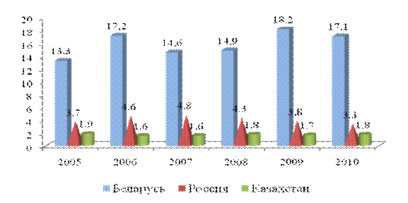 В современных условиях Беларусь, Казахстан и Россия в совокупности занимают доминирующее положение в СНГ, где в силу объективного разнообразия природно-климатических и производственно-экономических условий, взаимовыгодно дополнять друг друга, образуя в совокупности, с одной стороны мощную региональную группировку, конкурентоспособную на мировом рынке, с другой – уникальный транспортный коридор, связывающий европейскую и азиатскую части глобальной евразийской экономической системы.