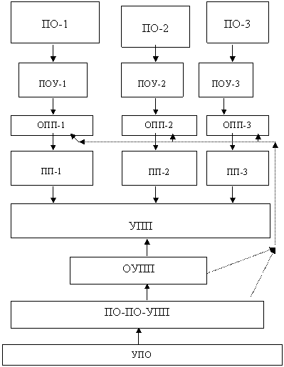 Поскольку любой производственный процесс протекает только в системе разделения труда, то есть в системе взаимосвязанных и "вложенных" друг в друга производственных процессов, то в этой сфере реально существует многоуровневая система "вложенных" друг в друга производственных коммун (см. схему рис.4). Этот факт приводит к тому, что назначение оператора производственного процесса не может рассматриваться только как исключительная функция данной конкретной производственной коммуны. Формирование такого оператора есть результат сложного процесса согласования, в котором должны участвовать следующие звенья:
