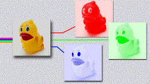 Аналогично передается и цветная картинка. Только в этом случае изображение, полученное из объектива с помощью системы светофильтров, раскладывается на три составляющих - красную, зеленую и синюю. Каждый цвет передается своей трубкой. Принимающая трубка имеет три электронных луча, скользящих по поверхности люминофора, дающего точки красного, зеленого и синего цвета. Эти цвета, смешиваясь, дают богатую палитру цветовых оттенков.