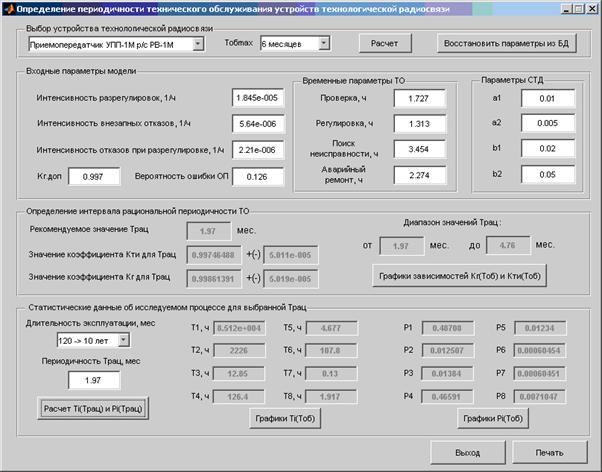 В нижней части окна расположены элементы ГИП для определения статистических данных о процессе эксплуатации и ТО выбранного устройства ТРС для рекомендуемого значения