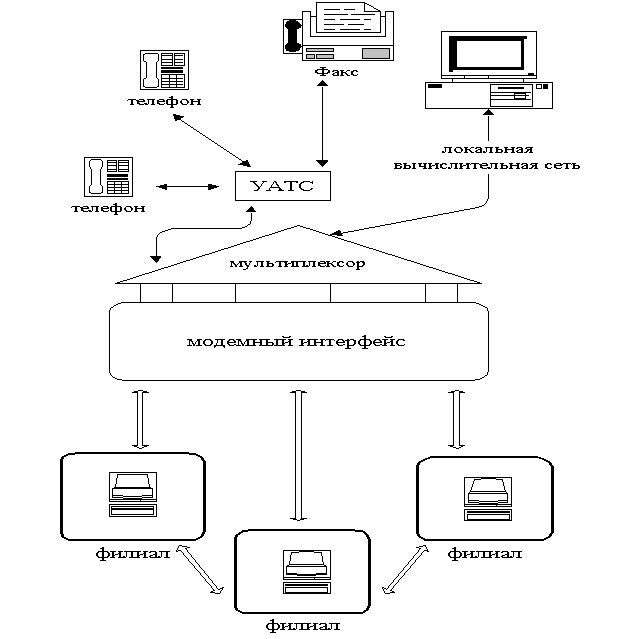 Рис. 11-1. Принципиальная схема сети голос/данные на базе телефонных линий.