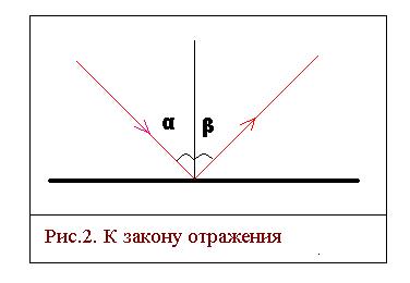 равен углу отражения. Этот закон также упоминается в сочинении Евклида. Установление его связано с употреблением полированных металлических поверхностей (зеркал), известных уже в очень отдаленную эпоху.