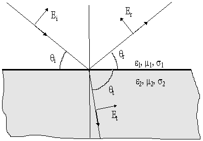 Если первая среда - свободное пространство (e1=1), а вторая среда не обладает магнитными свойствами (m1 = m0 ), то выражения (15), (16) упрощаются: