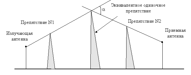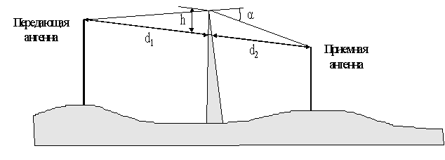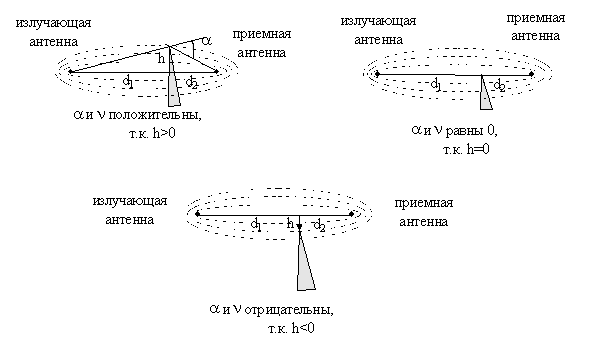 б) при h = 0 параметр n = 0. Из рис.10 дифракционные потери равны 6 дБ. С использованием аппроксимационной формулы (41в) дифракционные потери равны 6 дБ. Для h=0 разность хода D=0. Перекрывается середина 1-й зоны Френеля;