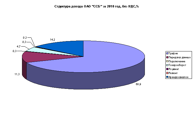 8.3. Приложение Структура доходов ОАО "Сотовая связь Башкортостана" за 2010год, %... 35