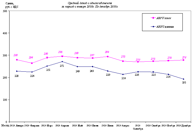 8.6. Приложение Средний доход с одного абонента, руб. за период с января по декабрь 2010г.