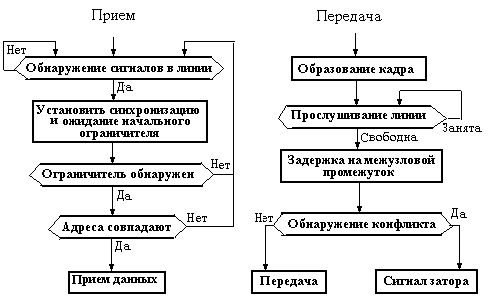 На рис. 4.1 представлены алгоритмы приема и передачи данных в одном из узлов при МДКН/ОК.