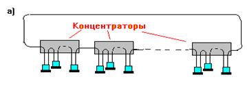 Рис. 4.3. Среда передачи данных на витой паре и концентраторах