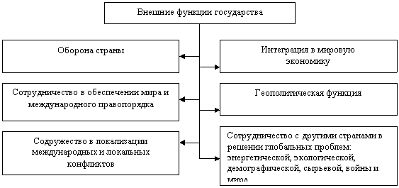 Внешние функции государства позволяют говорить о нем как о субъекте международных отношений. При этом следует выделить функцию защиты государственного суверенитета и функцию межгосударственного сотрудничества.