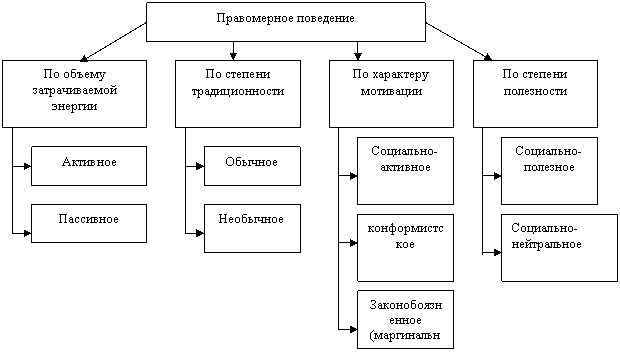 В зависимости от характера мотивации варианта поведения различаются три основных вида правомерного поведения: