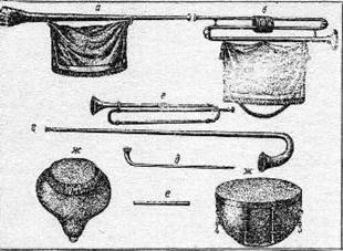 Звуковые сигналы применялись главным образом на небольшие расстояния для сбора войск и населения. Для передачи звуковых сигналов применялись: било (металлическая или деревянная доска), колокол, барабан, труба, посвистель и накры.