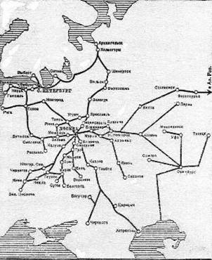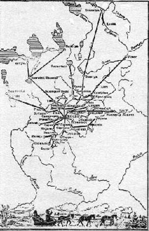 Карта ямских трактов XVI века. Почтовые пути России XVIII века.