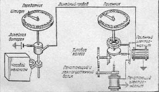 При работе электромагнита на пластинке записывалась волнистая линия, зигзаги которой соответствовали определенным знакам. В качестве передатчика использовался простой ключ, замыкающий и размыкающий электрическую цепь.